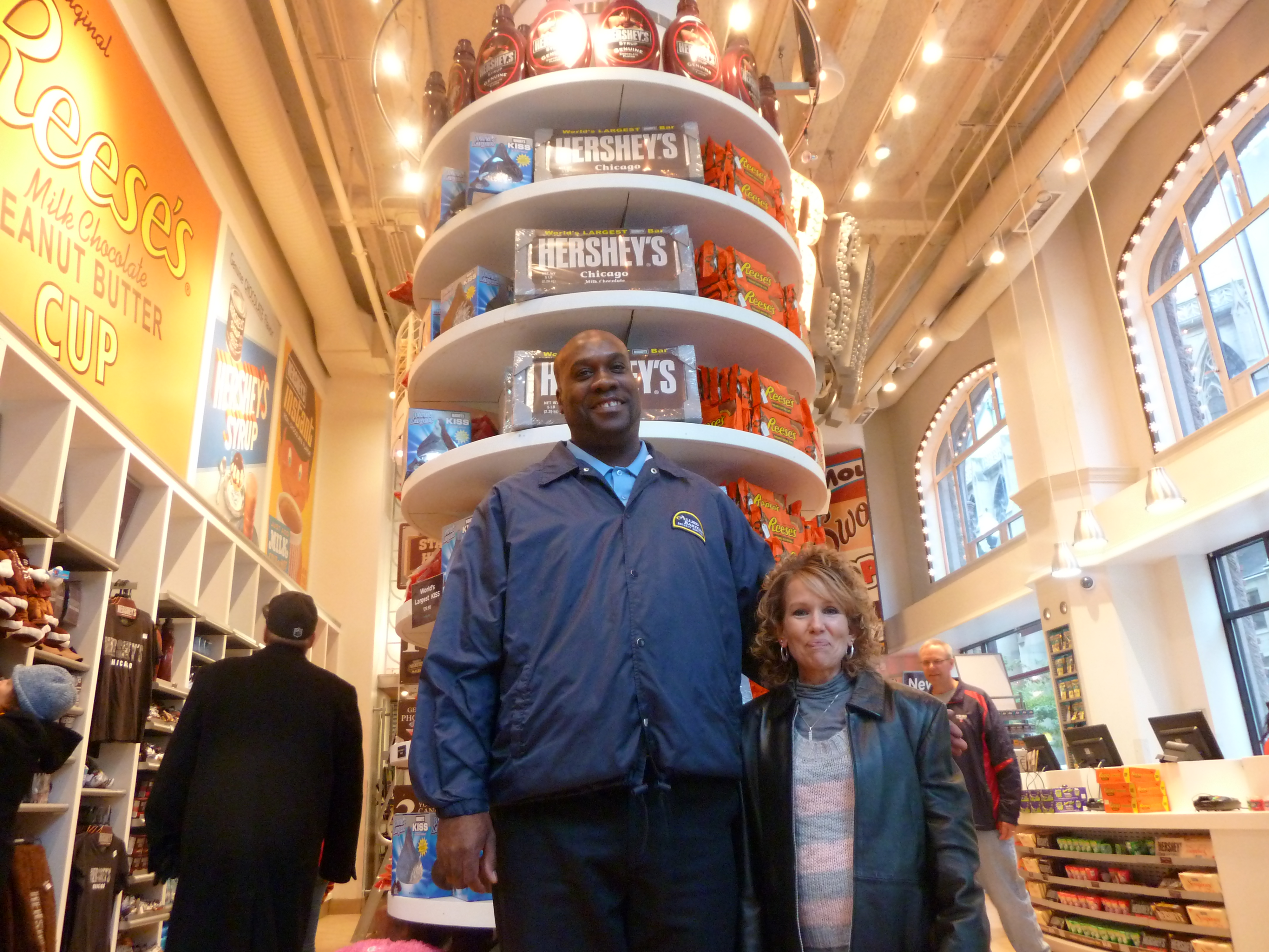 . . . and she’s pithy. (that’s a synonym for “short” as clearly seen above standing beside a security guard). Visiting Hershey’s in Chicago is always a must. BTY, I just love how cinnanyms give us other options so we don’t use the same word twice – especially on sweet rolls – don’t you!?